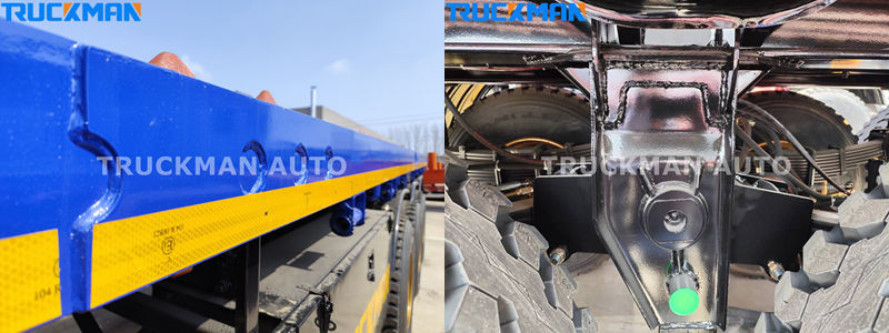 Before transporting the container flatbed semi trailer to the port, we apply a rust proofing treatment. A wax coating is applied to the container flatbed semi trailer, which effectively reduces the risk of rust formation during transit. This wax layer forms a durable protective barrier against moisture and salt spray, offering reliable corrosion resistance throughout the sea voyage. If the container flatbed semi trailer is placed on the ship’s deck during transport, we also cover it with a tarpaulin for added protection. These measures ensure that the container flatbed semi trailer arrives in perfect condition.