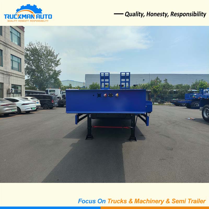 A semi-trailer used for transporting heavy equipment or large cargo, such as trucks, excavators, loaders, cranes, large steel components, large machine tools, etc., with a maximum load capacity of 50 tons.
