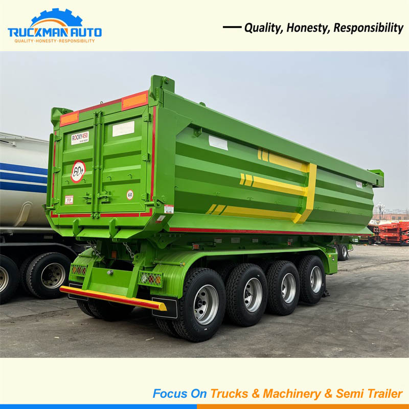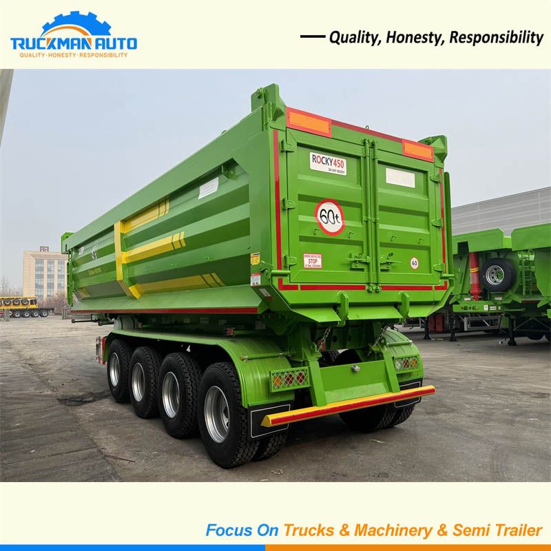The 60 tons dump trailer has advantages such as strong load capacity, high unloading efficiency, adaptability to complex road conditions, and excellent maneuverability. The 60 tons dump trailer's cargo box is made of ROCKY450 wear-resistant steel, which effectively resists repeated impacts and friction from sharp materials such as rocks and ores, significantly reducing wear and tear and extending its service life. Compared to ordinary carbon steel, its wear resistance is more than three times higher, greatly reducing cargo box wear, extending service life, and lowering maintenance and replacement costs.