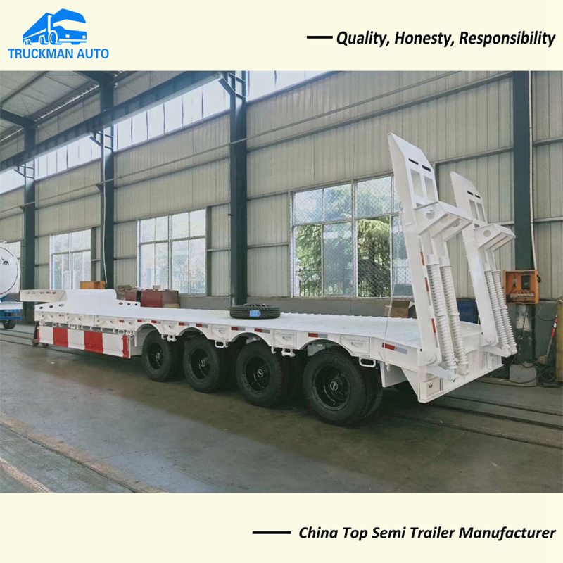 Heavy-duty low bed semi-trailer parameters 13-meter light-body trailer configuration: gooseneck type, the weight of the vehicle is about 8.3 tons. The size of the carriage is 13X2.5X1.8m, the girder height is 450-500mm, the upper wing plate is 8-14mm, the lower wing plate is 10-16mm, the 5--8mm standard web, 90# traction pin, 13 tons Fuhua Bridge, 12R22/5 vacuum tires. Other other configurations include 24 dual-purpose rope tensioners, 16-ton brake pads, 6 double-chamber air chambers, 2 spare tire racks, 2 tool boxes, and optional water sprinklers. Fuwa 13T axle (optional BPW, Qingdao York) tire triangle 12R22.5 tubeless tire (optional double star, double happiness, double money, etc.). Therefore, the 13-meter light high hurdle trailer can pull 60-80 tons of