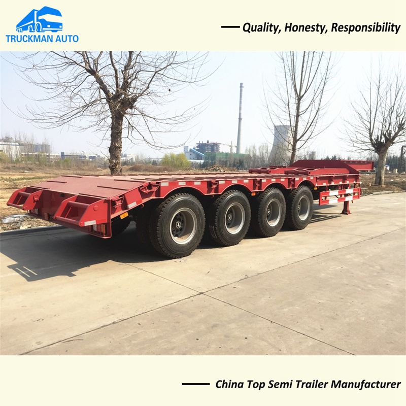 TRUCKMAN Brand 80 ton low bed lowboy semi trailer is usually used to transport heavy vehicles (such as tractors, buses, special vehicles, etc.), rail vehicles, mining machinery, forestry machinery, construction machinery (such as excavators, bulldozers, loaders, pavers, cranes) and other heavy-duty goods. The lower the center of gravity, the better the stability and safety. The more capable it is to transport super-high cargo and pass overhead obstacles.