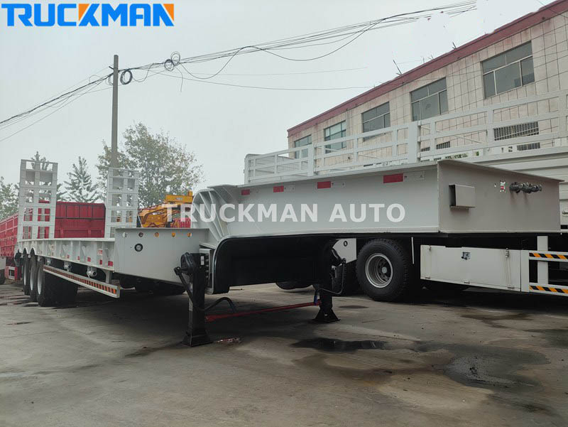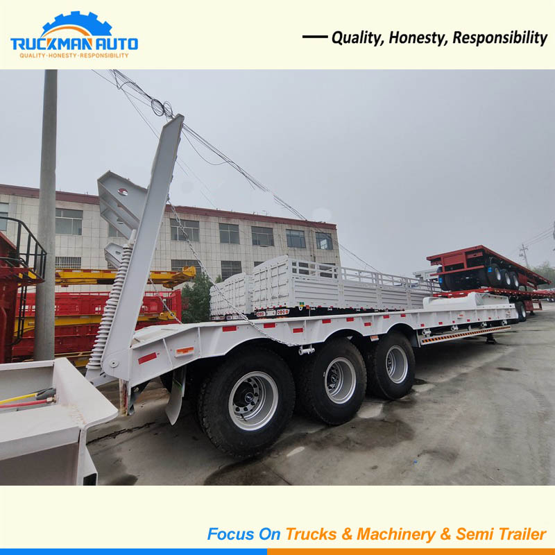 This 3 axle lowbed semi trailer is tough for heavy loads up to 50 tons, perfect for carrying construction materials, farm machinery and large industrial pipes. Made of high strength Q355 steel with a thick anti rust coating, it resists corrosion in rainy or coastal areas and lasts long. It’s 3 axle design distributes weight evenly for stable turns, and each axle has strong leaf spring suspension plus durable tires for smooth long hauls and less maintenance.