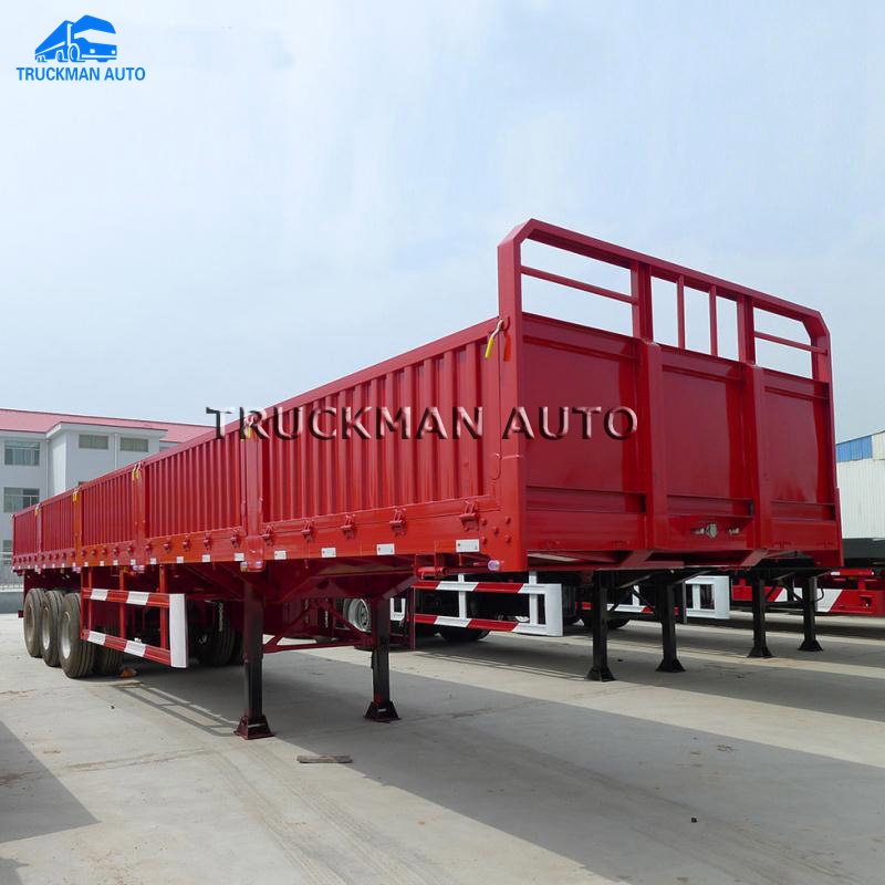 Side wall semi trailer used for the bulk cargo and container transport, and with the 60 tons loading capacity.