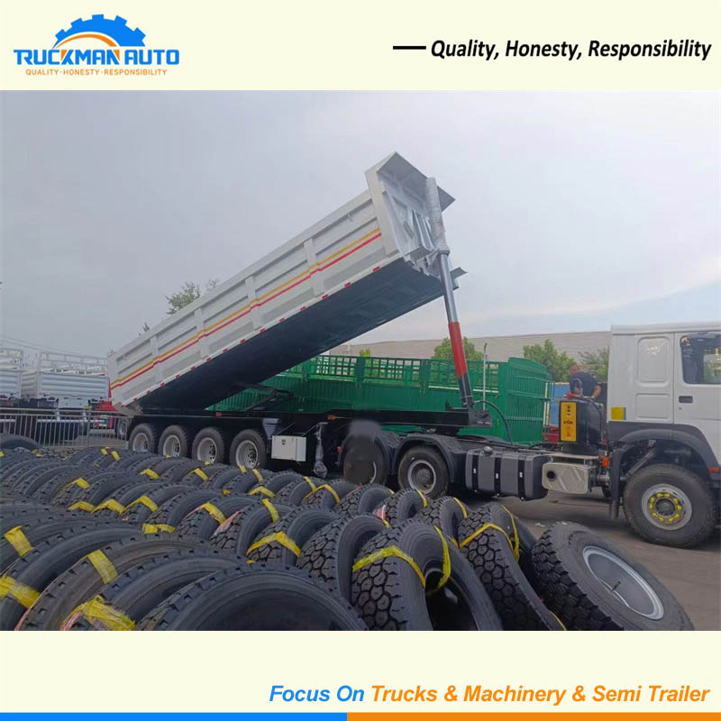 The dump semi trailer uses a hydraulic system to drive the carriage to achieve autonomous unloading, mainly including two operating modes: side rollover and rear rollover.