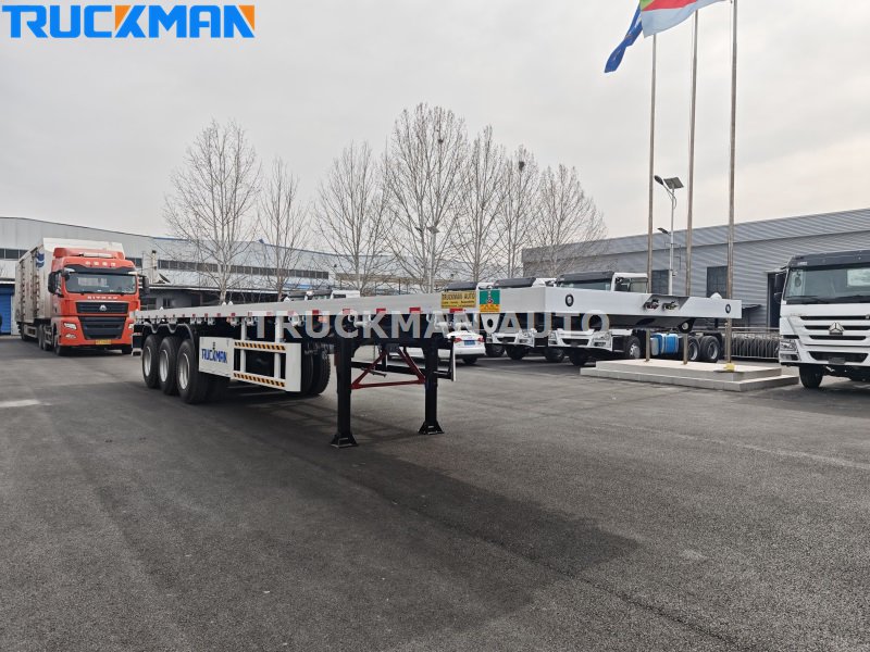 The container flatbed trailer is designed to carry containers of different sizes and is able to accommodate different needs from 20 feet to 48 feet.