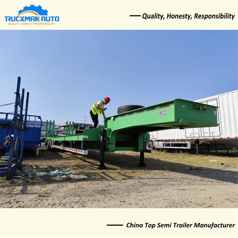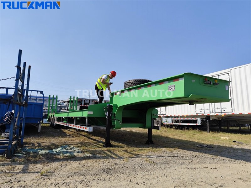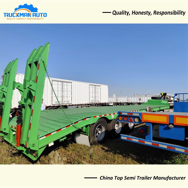 The lowboy tractor trailer is also called as low bed trailer, mainly used for the excavator, bulldozer, asphalt paver etc construction machinery. The construction machinery carried on a lowboy trailer is typically heavy and requires a robust and durable trailer to handle the load. Lowboy trailers are designed with reinforced structures, multiple axles, and heavy-duty suspension systems to ensure stability and weight distribution.