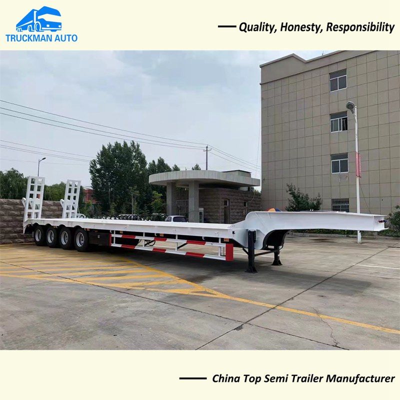 A lowbed trailer is a typical open deck equipment that its bodywork is just an entirely flat, has no roof or fixed sides. It can